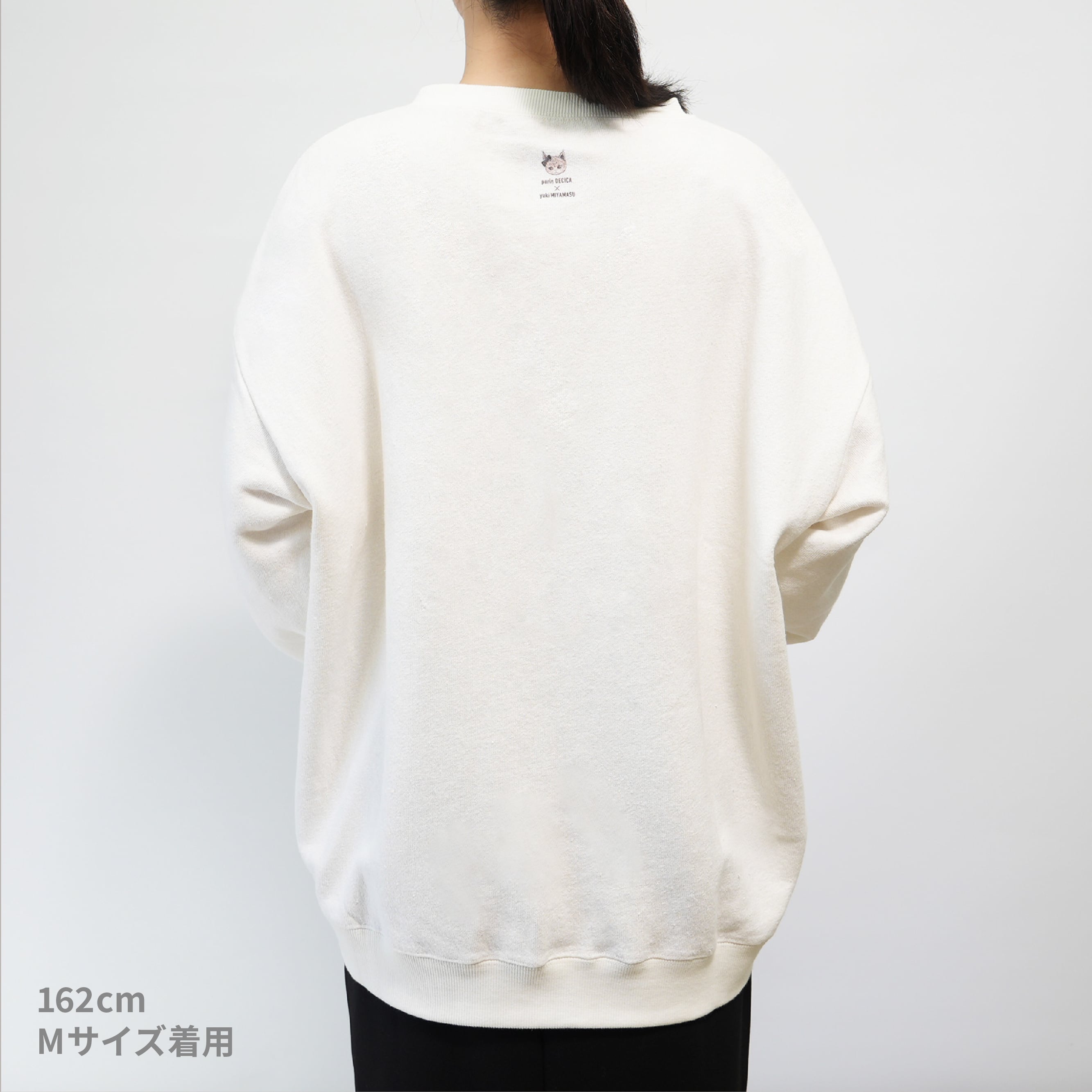 【サイズ感】丈は腰下あたりで動いてもお腹は見えない程度でジャストサイズです。すっきりとキレイめスタイル(スカートなど)に合わせてトレーナーを着たい方におすすめです♩